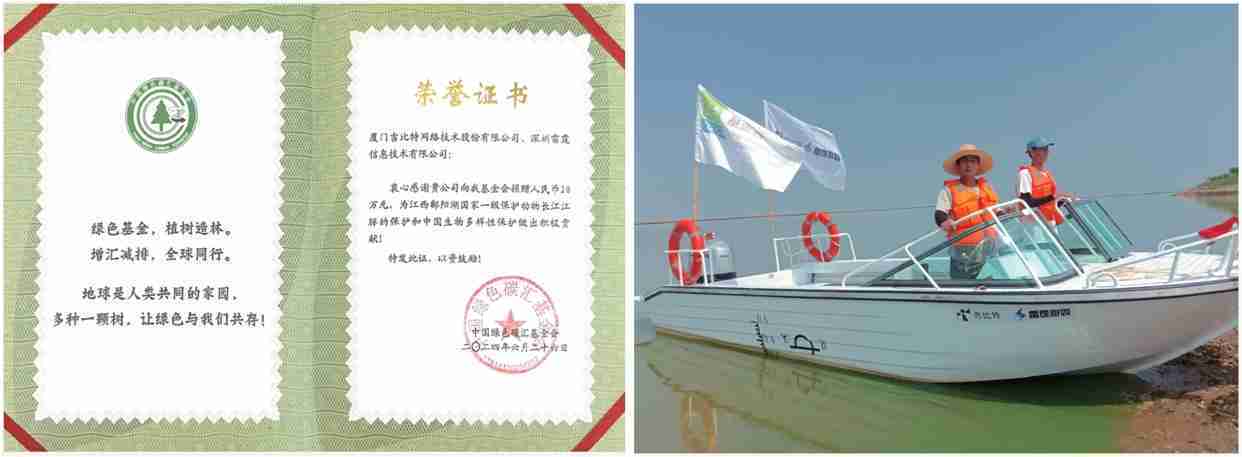 2024年6月,,公司攜手中國綠色碳匯基金會,,開展“保衛江豚”公益活動,,向基金會捐贈人民幣20萬元用于采購全新巡邏艇,,,,以支持鄱陽湖長江江豚保護工作。。截至2024年底,,公司捐贈的資金與巡邏艇已經有效協助巡護隊對鄱陽湖1,667頭江豚開展保護行動。。。。