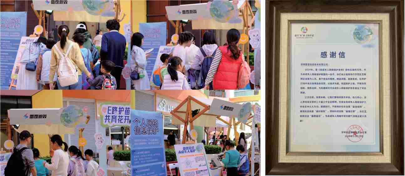 2024年11月,,,公司受邀參加由深圳市互聯網信息辦公室、、、深圳市婦女聯合會、、、深圳市文明辦聯合主辦的“E路護苗 共育花開”——2024深圳未成年人網絡共護行動游園會,,,并作為企業代表發言,,,介紹未成年人保護體系及相關公益實踐,,,獲得深圳市網信辦的認可。。。。